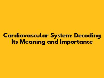 What Does Cardiovascular System Actually Mean?