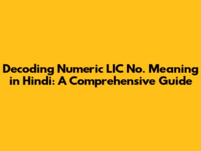 Decoding Numeric LIC No. Meaning In Hindi: A Comprehensive Guide