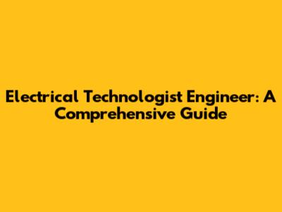 Electrical Technologist Engineer: A Comprehensive Guide