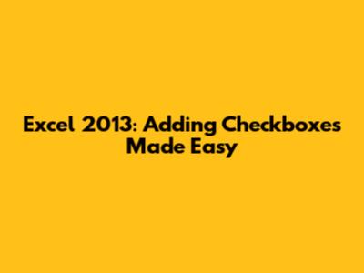 Hey guys, ever found yourself needing to create interactive lists or surveys in Excel? Maybe you're tracking tasks, running a quick poll, or just want to make your spreadsheet a little more dynamic. Well, you're in luck, because adding checkboxes in Excel 2013 is super straightforward once you know where to look. Forget those clunky manual methods; we're talking about real, clickable checkboxes that make your data entry a breeze and your spreadsheets look way more professional. Whether you're a beginner or you've been using Excel for ages but never stumbled upon this gem, this guide is for you. We'll walk through the simple steps to get those little boxes into your sheets, transforming them from static tables into interactive tools. So, grab your Excel 2013 workbook, and let's get this party started!