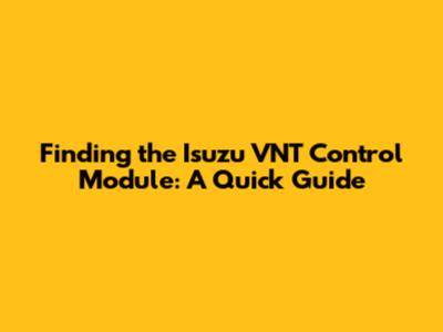 Finding The Isuzu VNT Control Module: A Quick Guide
