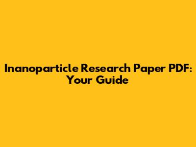 Inanoparticle Research Paper PDF: Your Guide