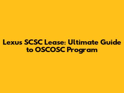 Lexus SCSC Lease: Ultimate Guide To OSCOSC Program