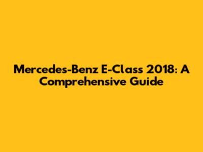 Mercedes-Benz E-Class 2018: Everything You Need To Know