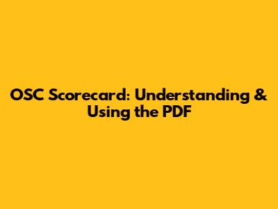 OSC Scorecard: Understanding & Using The PDF