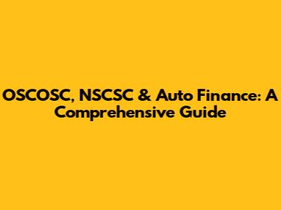 OSCOSC, NSCSC & Auto Finance: A Comprehensive Guide