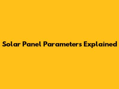 Solar Panel Parameters: A Simple Explanation