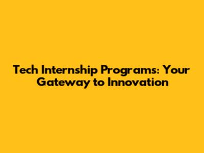 Tech Internship Programs: Your Gateway To Innovation